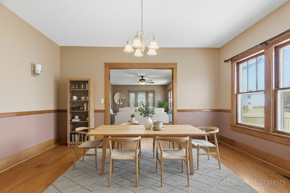 This bungalo style home offers space, large windows, a spacious kitchen and a cathedral window. All blending to create this special home, captured in photos.
